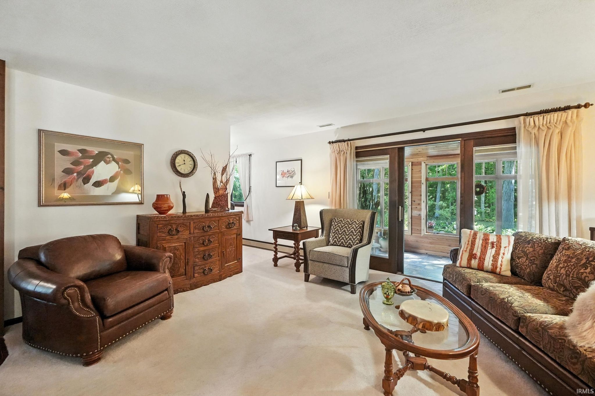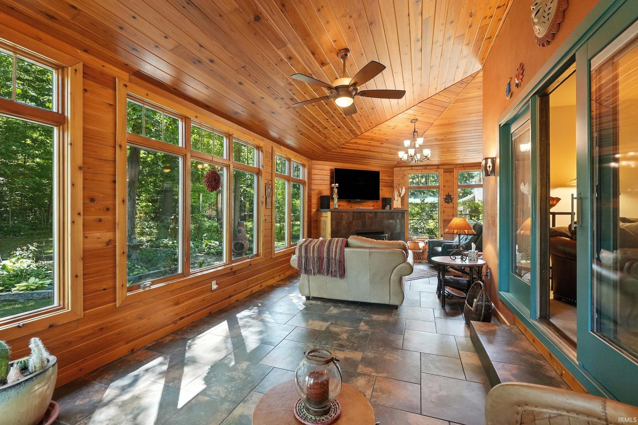 Set on 1.3 private acres on two nearly identical attached parcels, this one-owner home offers a rare rural retreat surrounded by mature trees and a peaceful backyard forest oasis—all within the highly regarded Northwest Allen County Schools district. Built in 1973 and lovingly maintained, the home boasts excellent curb appeal with an all-wood exterior, manicured lawn, raised mulch and flower beds, and a charming flagstone pathway. Inside, nearly 3,300 square feet of living space blends timeless craftsmanship with thoughtful updates. The main level features a spacious living room, dining room, kitchen with large pantry storage, two additional bedrooms, and a laundry area with convenient half bath. Natural wood trim and exposed beams throughout add warmth and architectural character you simply can’t replicate today. A highlight of the home is the 2008 enclosed 4 season porch addition—a stunning space wrapped in windows with heated floors and a gas log fireplace, offering the perfect spot to relax and take in the wooded views year-round. The primary suite occupies the entire upper level, creating a true private retreat. The updated bathroom (2016) features a ceramic tile walk-in shower, while the cathedral ceiling with whitewashed exposed beams adds both volume and charm. A generous closet area completes the suite.The finished basement expands the living space with a wet bar, ventless gas log fireplace, daylight windows, and new carpet, providing a flexible blank slate for entertainment, hobbies, or future plans. Major updates include all new windows (2016) and a tear-off roof (2008). The home is equipped with a heat pump, central air, and supplemental baseboard heat for comfort in every season. If you’ve been searching for privacy, character, and space—this property delivers. Call your favorite local Realtor to set up a showing today.
